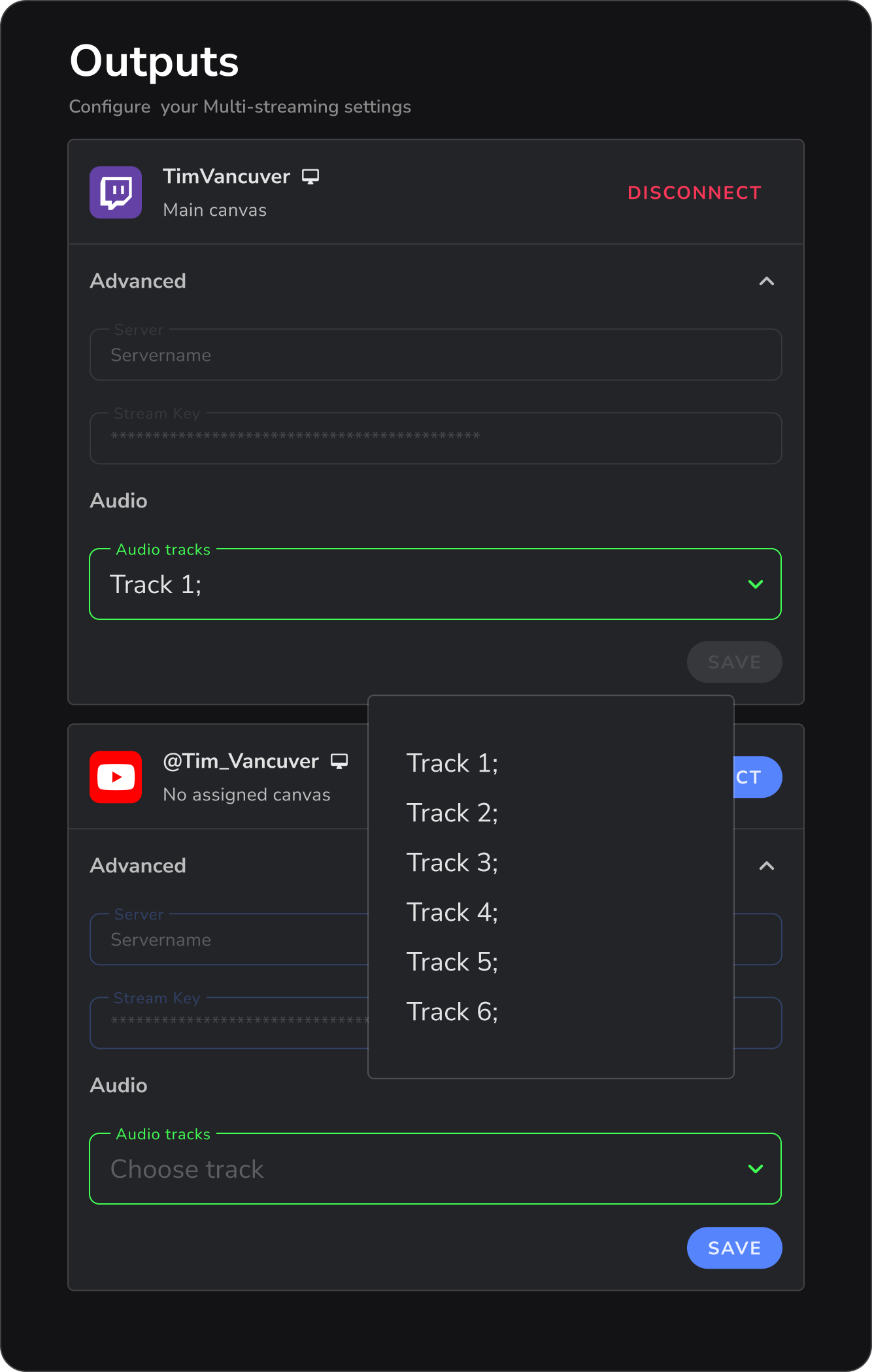 • Don't risk a copyright strike! Choose which audio tracks go to each platform—sending music to your live streams while keeping it off your VOD channels.